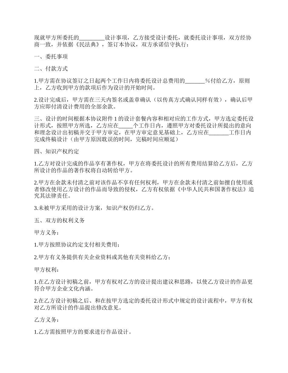 委托设计协议书范本协议编号:___________甲方:_____________________________乙方:_____________________________现就甲方所委托的_________设计事项,乙方接受设计委托,就委托设计事项,双方经协商一致,并...