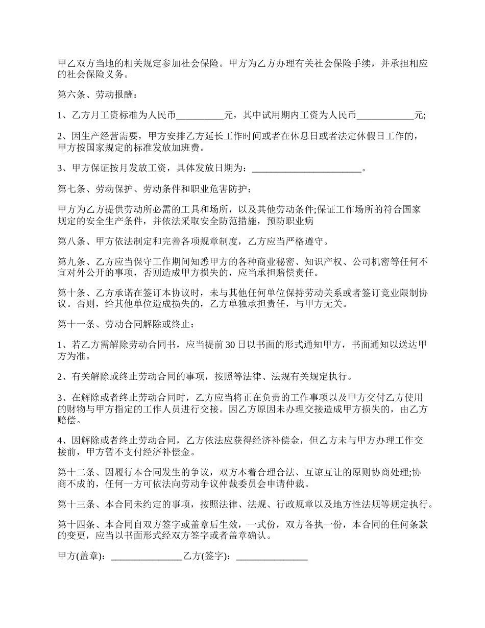 保险公司劳动合同范本.docx