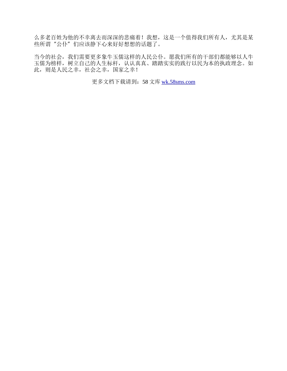 学习牛玉儒事迹体会近日,国内多家媒体相继报道了内蒙古呼和浩特市委书记牛玉儒的感人事迹。顿时,在祖国的大江南北、白山黑水之间,在领导干部、普通群众之中,引起了强烈的反响和极大的震撼。看着电视里播放着...