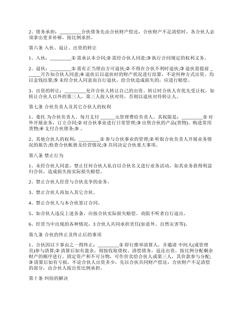 餐饮业合伙协议样板.docx_第2页
