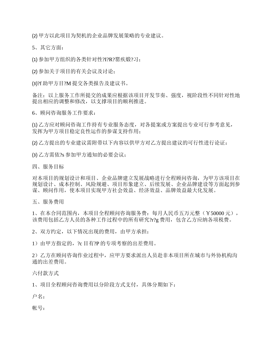 咨询服务合同经典版范本委托方(甲方):服务方(乙方):甲方委托乙方承担“_________地块项目”(暂定名称)?_?l?I规划管理顾问咨询服务工作,经协商一致,签订该项目?_?l?I建?h,?a?I规划设计、品牌?\?I发展战...