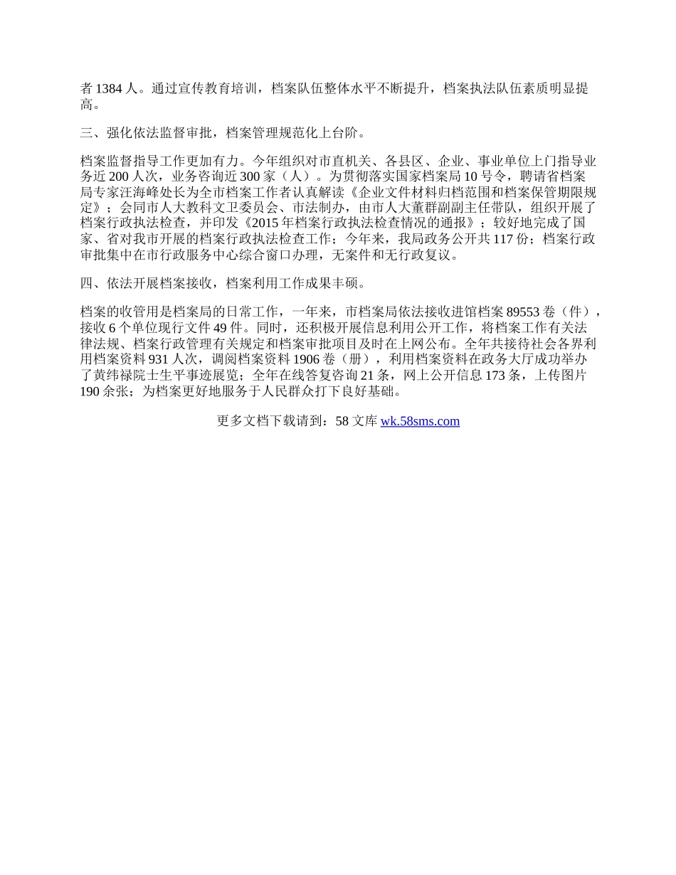 档案局法治建设工作总结一年来,我局法治建设工作在市委、市政府及市依法治市领导小组领导下,在市人大和省档案局的监督指导下,紧紧围绕中共市委《关于印发<法治建设纲要(2011-2015年)>的通知》和中共市委、市...