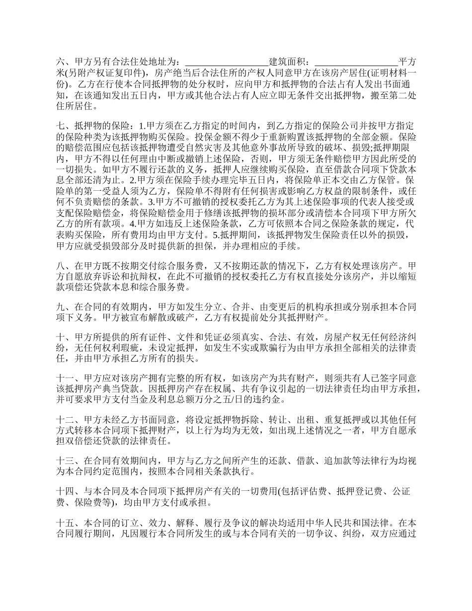 标准房屋他项抵押合同范文合同编号:_________________年字第号当户(出典人):__________________(以下称甲方)住所(地址):_____________身份证号码:_________________抵押房产位置:_____________联系电话:___...