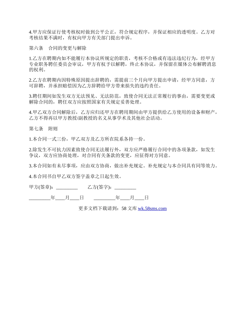 教师高级职务聘任合同书样书聘任方:_________(简称甲方)受聘方:_________(简称乙方)甲方根据工作需要,设置_________(岗位名称)教授/副教授岗位(岗位编号_________),乙方自愿申请应聘甲方该岗位,并明知、认可...