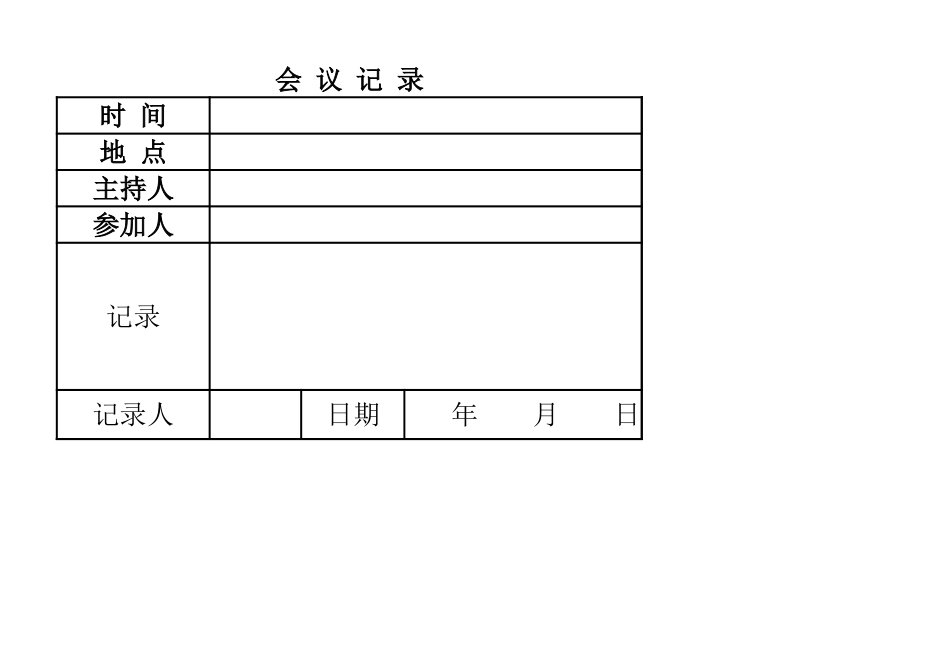 会议记录时间地点主持人参加人记录记录人日期年月日