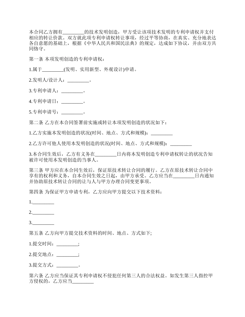 专利权转让协议书通用范本合同编号:_________项目名称:_________受让方(甲方):_________住所:_________法定代表人:_________项目联系人:_________联系方式:_________通讯地址:_________电话:_________传...