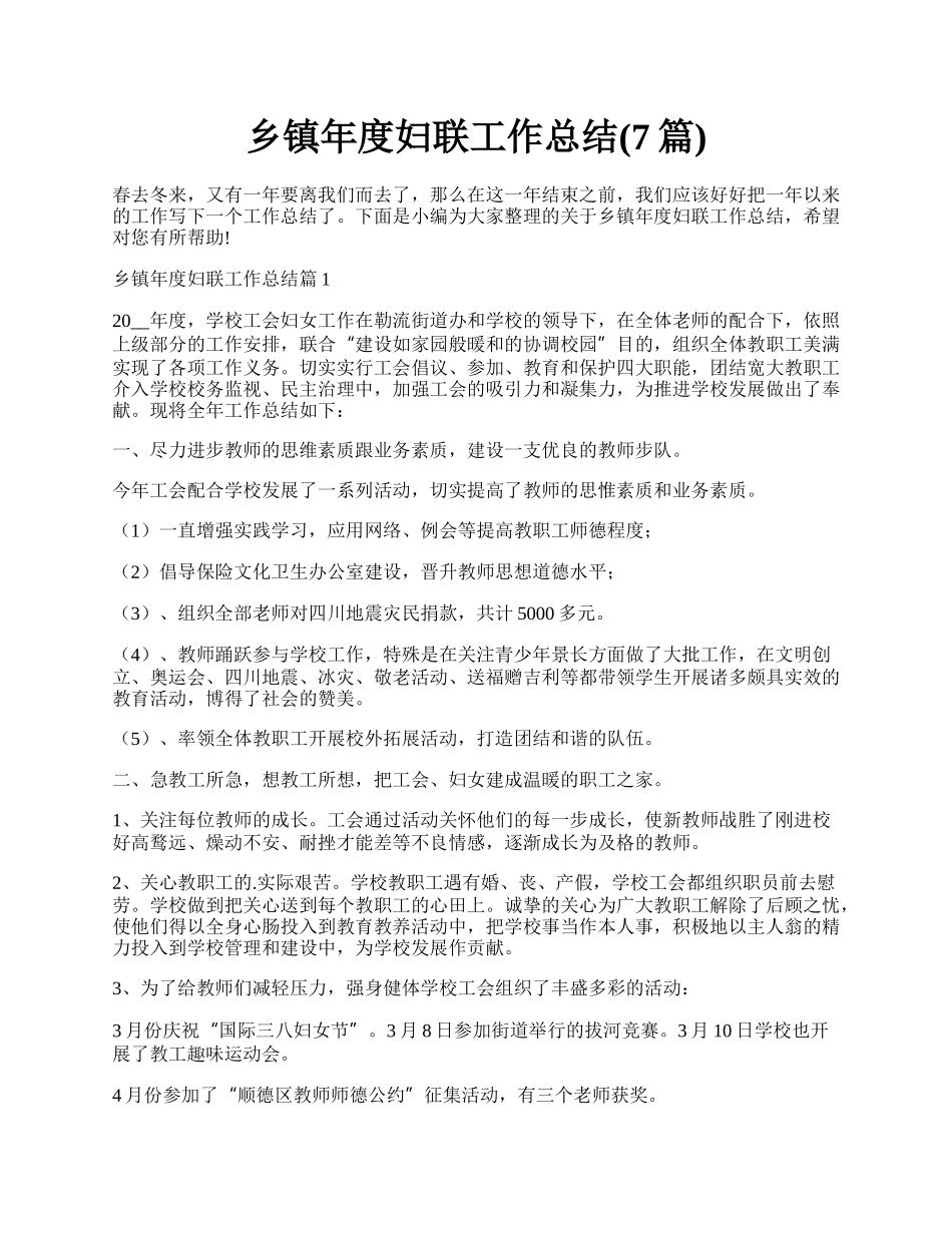 乡镇年度妇联工作总结(7篇).docx_第1页