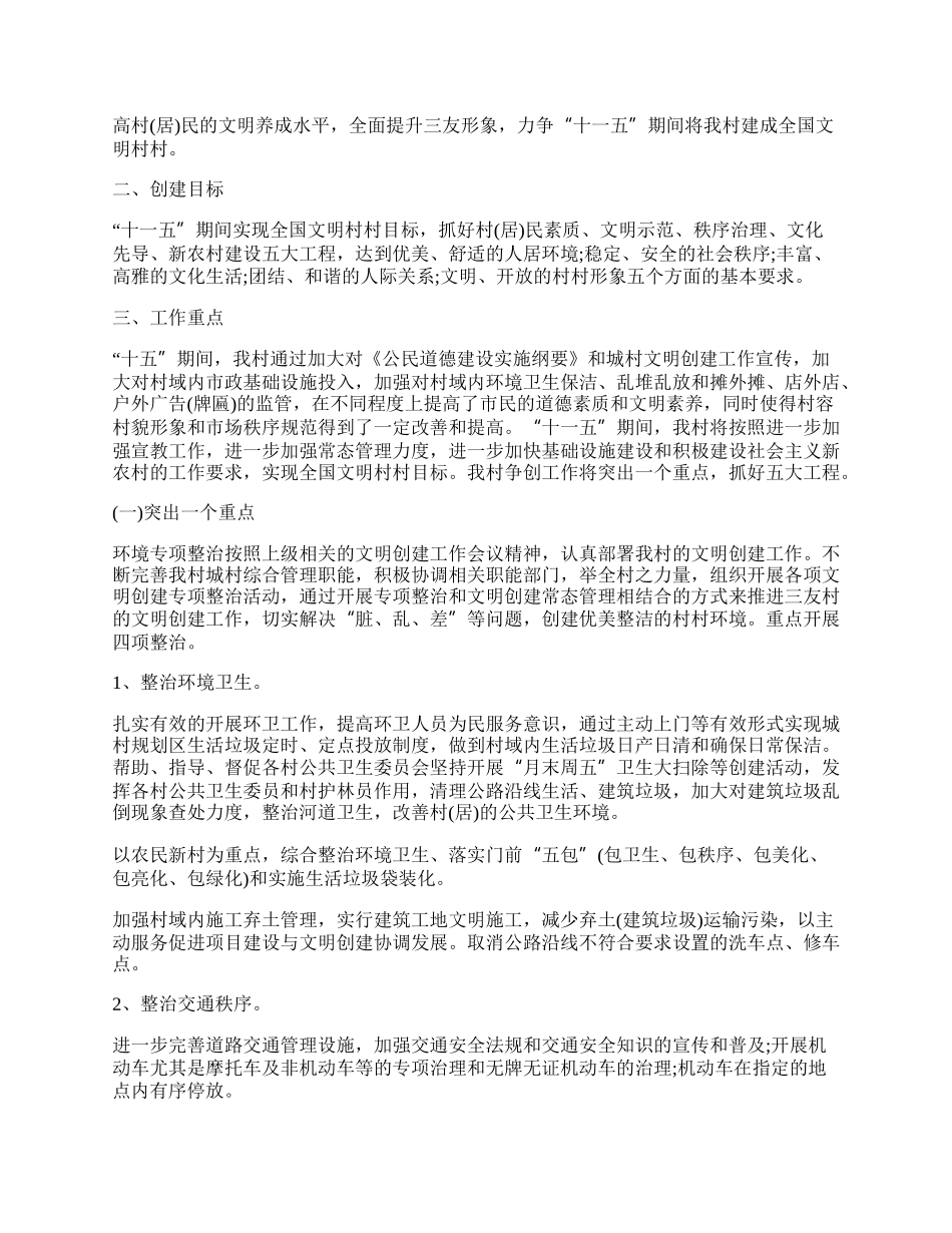 文明村创建工作总结模板参考2021文明村创建工作总结模板1一、成立领导小组、明确工作职责。_村文明村创建工作领导小组组长由村党委书记__有担任,副组长由村主任__担任,组员由村内干部组成,并分配好工作任务,...