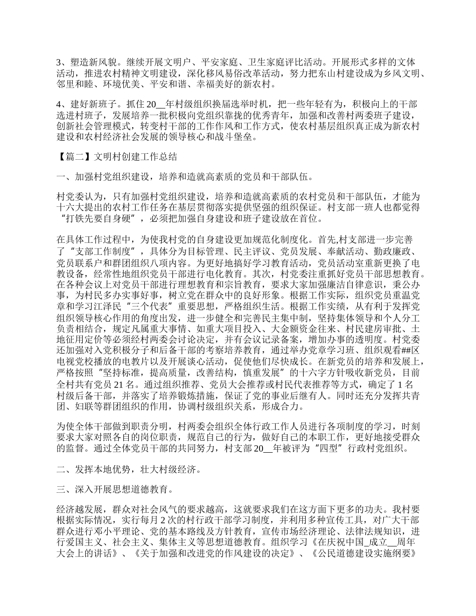 文明村创建工作总结工作总结是对工作过程的回顾,叙述每个阶段的成绩、做法、经验、体会。你知道文明村创建工作总结怎么写吗?今天小编在这给大家整理了一些文明村创建工作总结,我们一起来看看吧!更多工作总结相...
