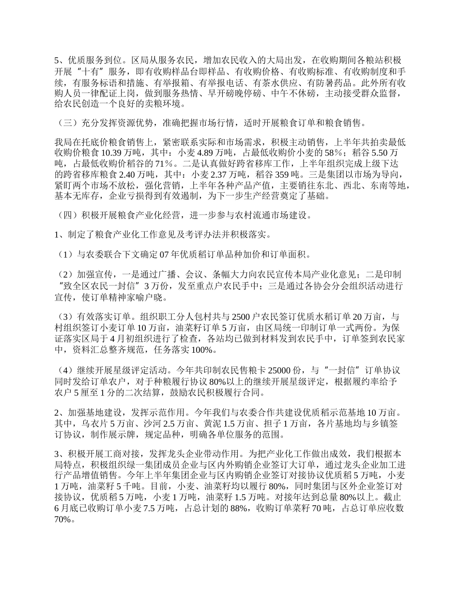 粮食局政府上半年工作总结(县)在区委、区政府正确领导下,在上级粮食部门的正确指导下,区局党组团结带领全局广大干部员工,解放思想、创新思路、扎实工作,以科学发展观为指导,以深化改革为动力,以安全储粮...