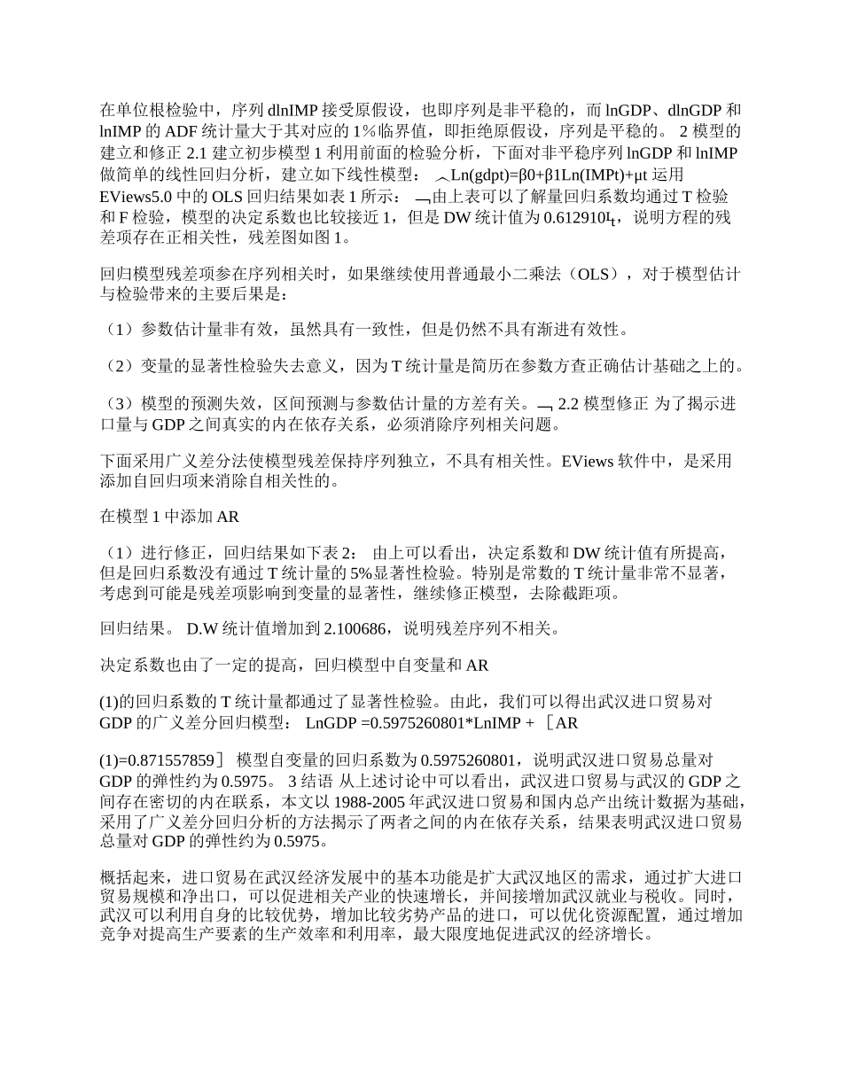 武汉进口贸易与经济增长的实证研究(1)论文.docx