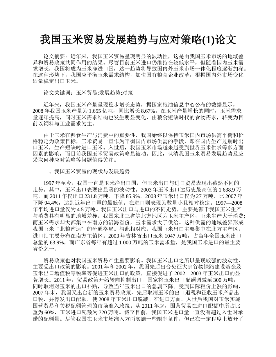 我国玉米贸易发展趋势与应对策略(1)论文.docx
