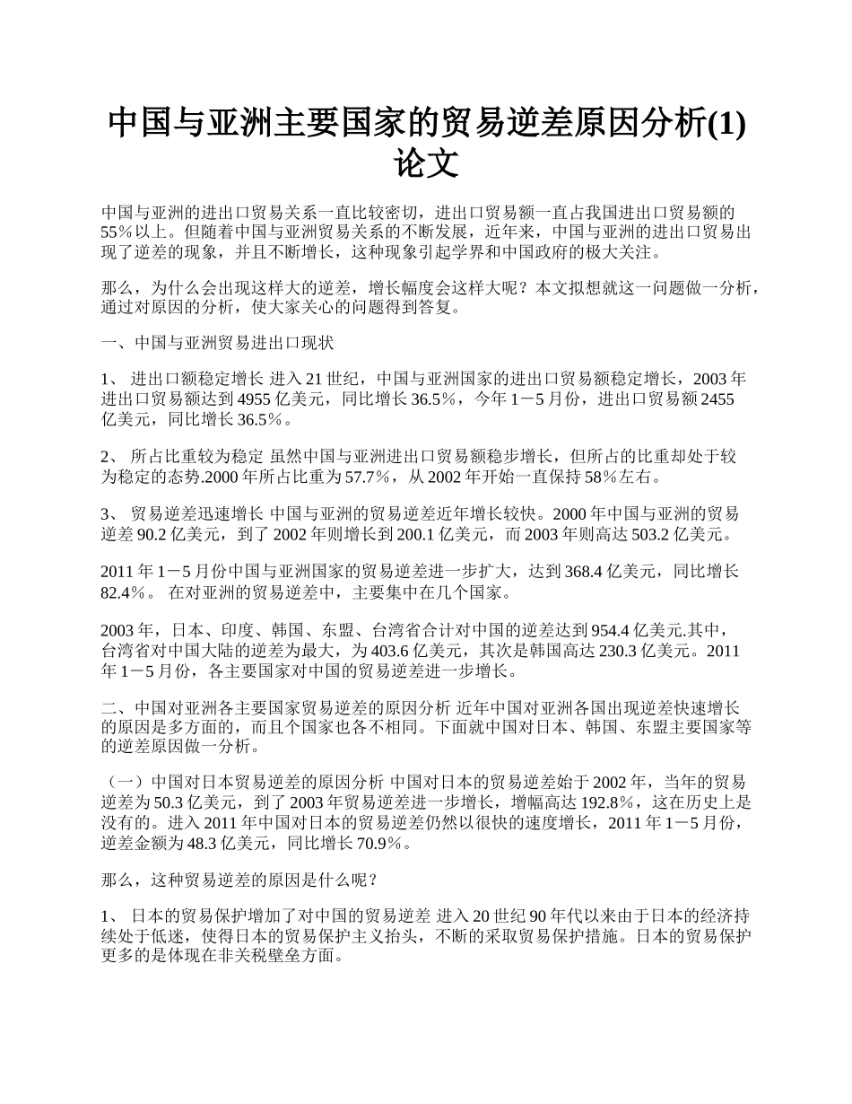 中国与亚洲主要国家的贸易逆差原因分析(1)论文.docx