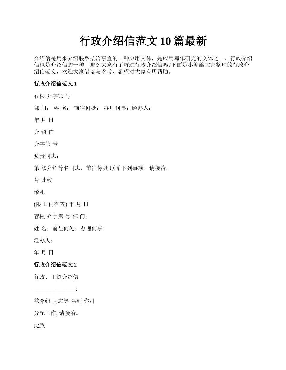 行政介绍信范文10篇最新.docx_第1页