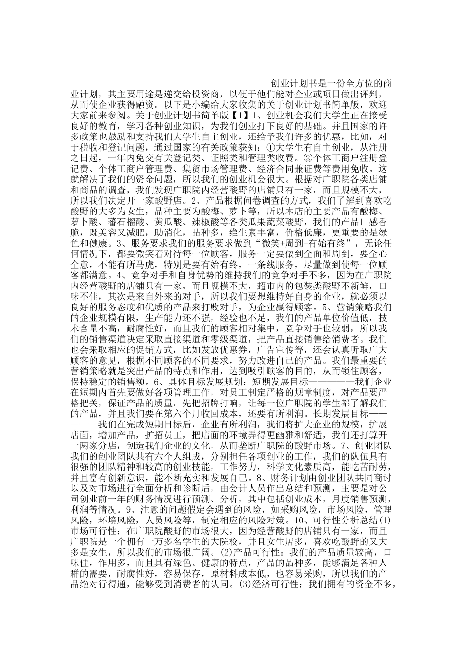 创业计划书是一份全方位的商业计划,其主要用途是递交给投资商,以便于他们能对企业或项目做出评判,从而使企业获得融资。以下是小编给大家收集的关于创业计划书简单版,欢迎大家前来参阅。关于创业计划书简单版...