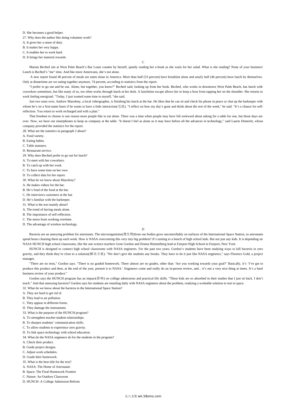 英语5年真题试卷精校版word_20XX年英语真题已整理_2 全国II卷.docx_第3页