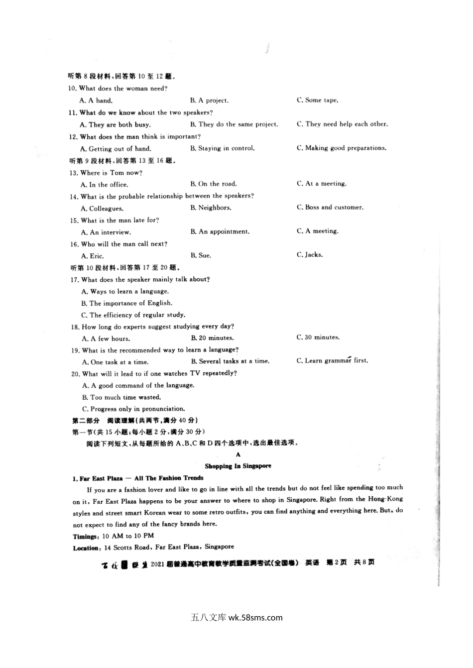 百校联盟20XX届旧高考9月份联考英语试题Doc1.docx_第2页