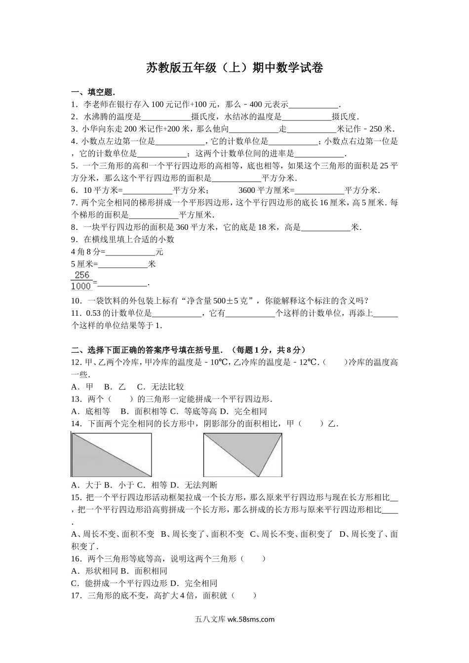 小学五年级数学上册_3-10-3-2、练习题、作业、试题、试卷_苏教版_期中测试卷_苏教版数学五年级上学期期中测试卷1.doc