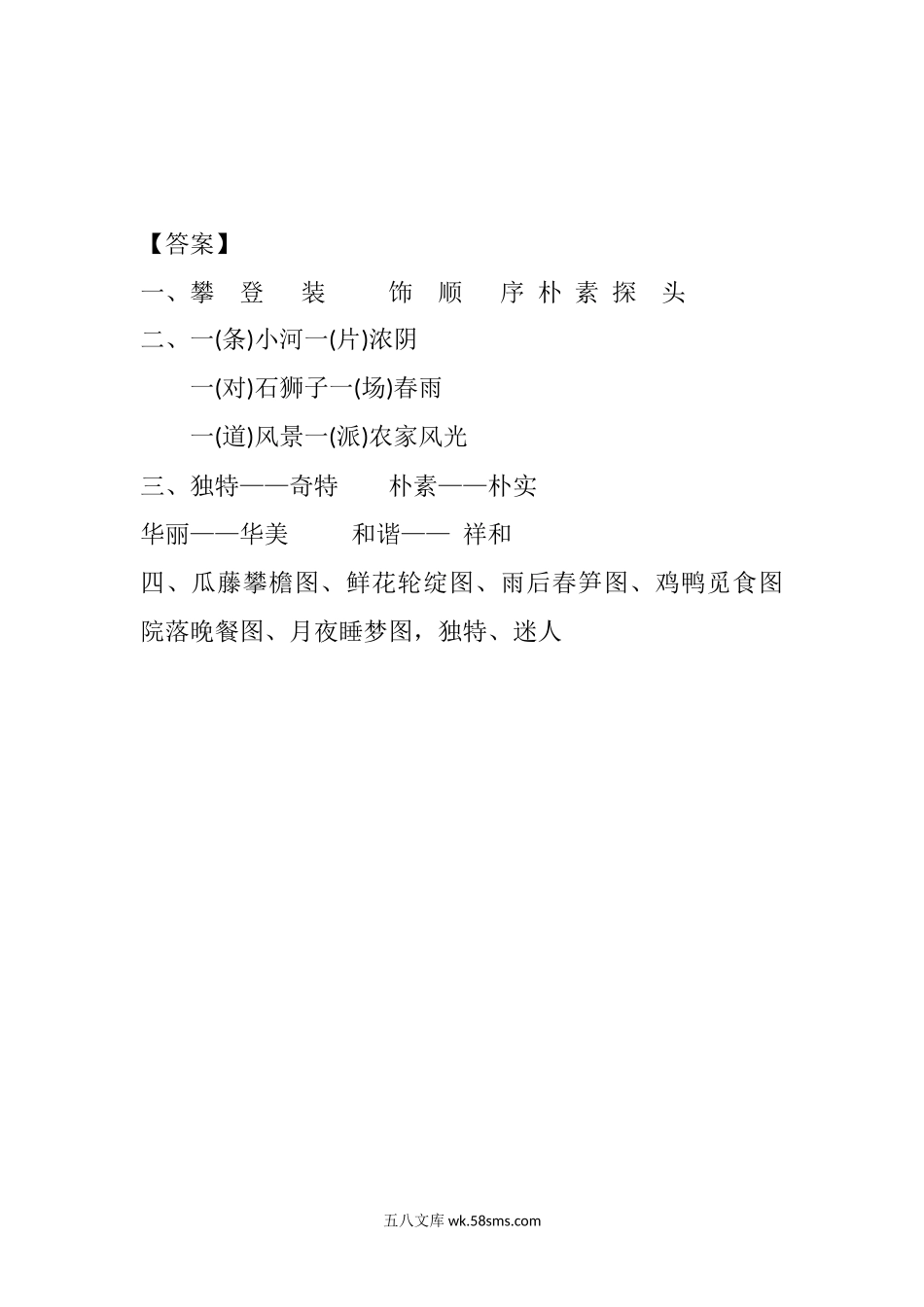 小学四年级语文下册_3-9-2-2、练习题、作业、试题、试卷_部编(人教)版_课时练_四年级下册下课时练习(一课一练含答案)第一单元-2 乡下人家课时练.docx_第3页