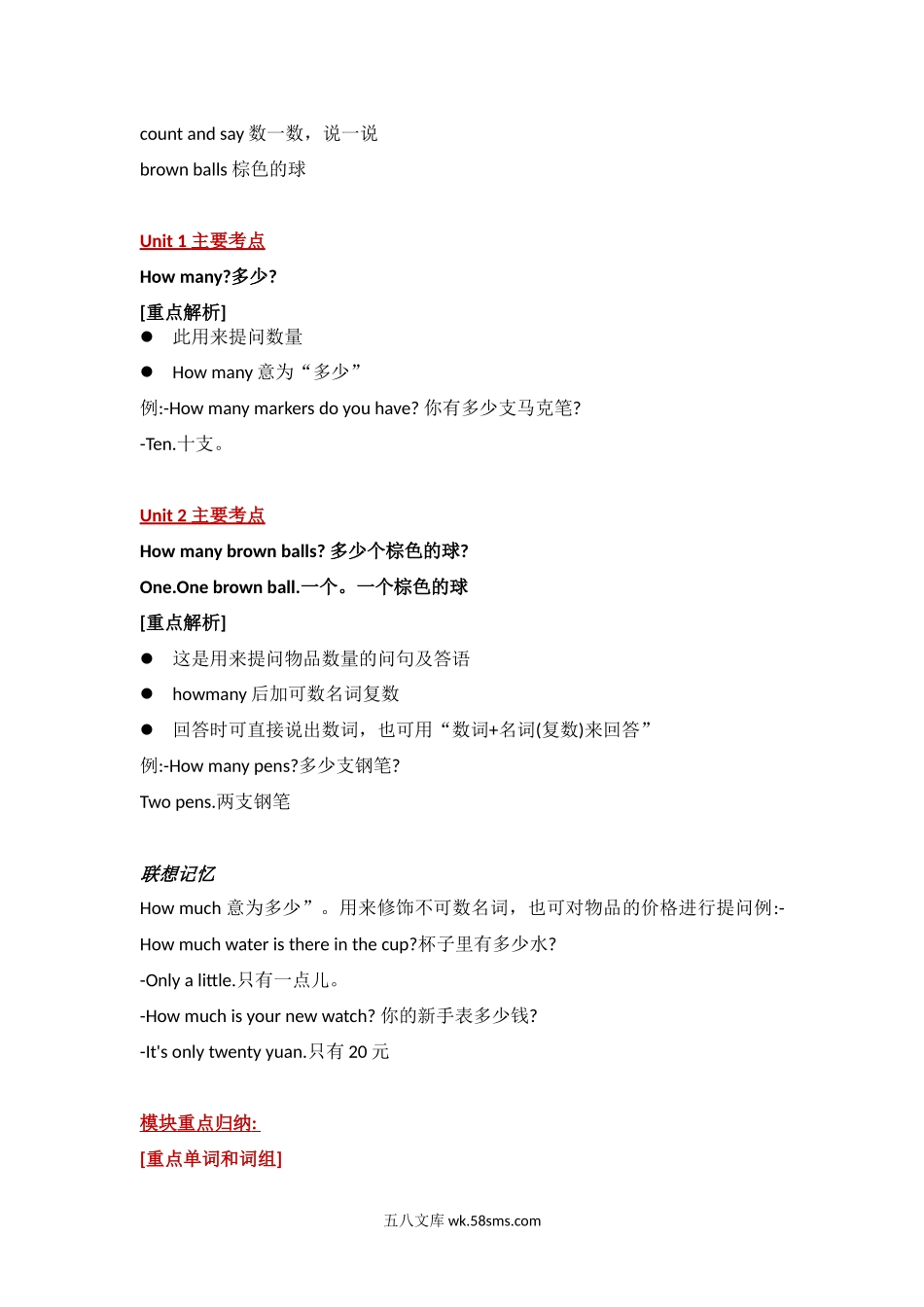 小学一年级英语上册_3-6-5-1、复习、知识点、归纳汇总_外研版一起点_外研社版小学英语 (一年级起点)一年级上册Module 8知识点精析.docx_第2页