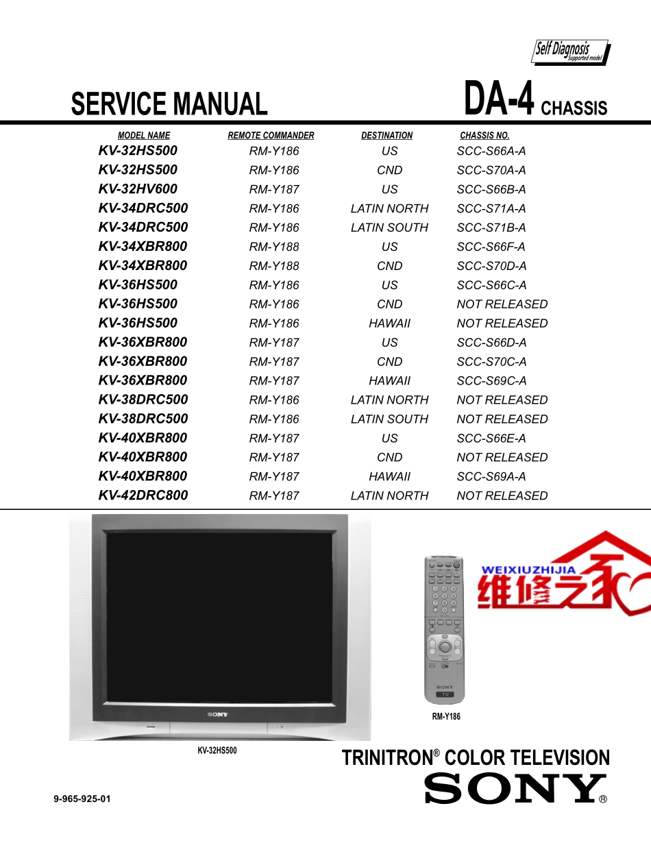TRINITRON®COLORTELEVISIONSERVICEMANUALDA-4CHASSISMODELNAMEREMOTECOMMANDERDESTINATIONCHASSISNO.9-965-925-01KV-32HS500RM-Y186USSCC-S66A-AKV-32HS500RM-Y186CNDSCC-S70A-AKV-32HV600RM-Y187USSCC-S66B-AKV...