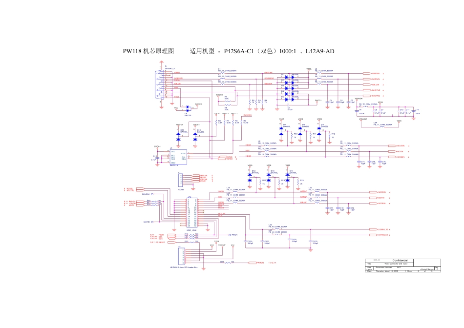 PW118机芯原理图适用机型:P42S6A-C1(双色)1000:1、L42A9-ADGVCC1R275HDCBIN4C112pFR21100C70.1uFC232330pFGVSYNC4R18100L3FB_11_OHM_500MAC231330pFD11BAV99L132GGRNIN4HDCRD8BAV99L132C130.1uFC1512pFD12BAV9...