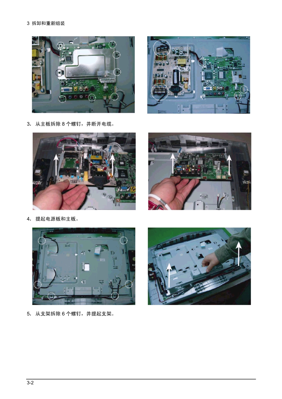 3拆卸和重新组装3-13拆卸和重新组装拆卸和重新组装拆卸和重新组装拆卸和重新组装维修手册的这一章叙述LA20S51B液晶电视的拆卸和重新组装步骤警告警告警告警告本显示器包含静电敏感器件本显示器包含静电敏感器件本...