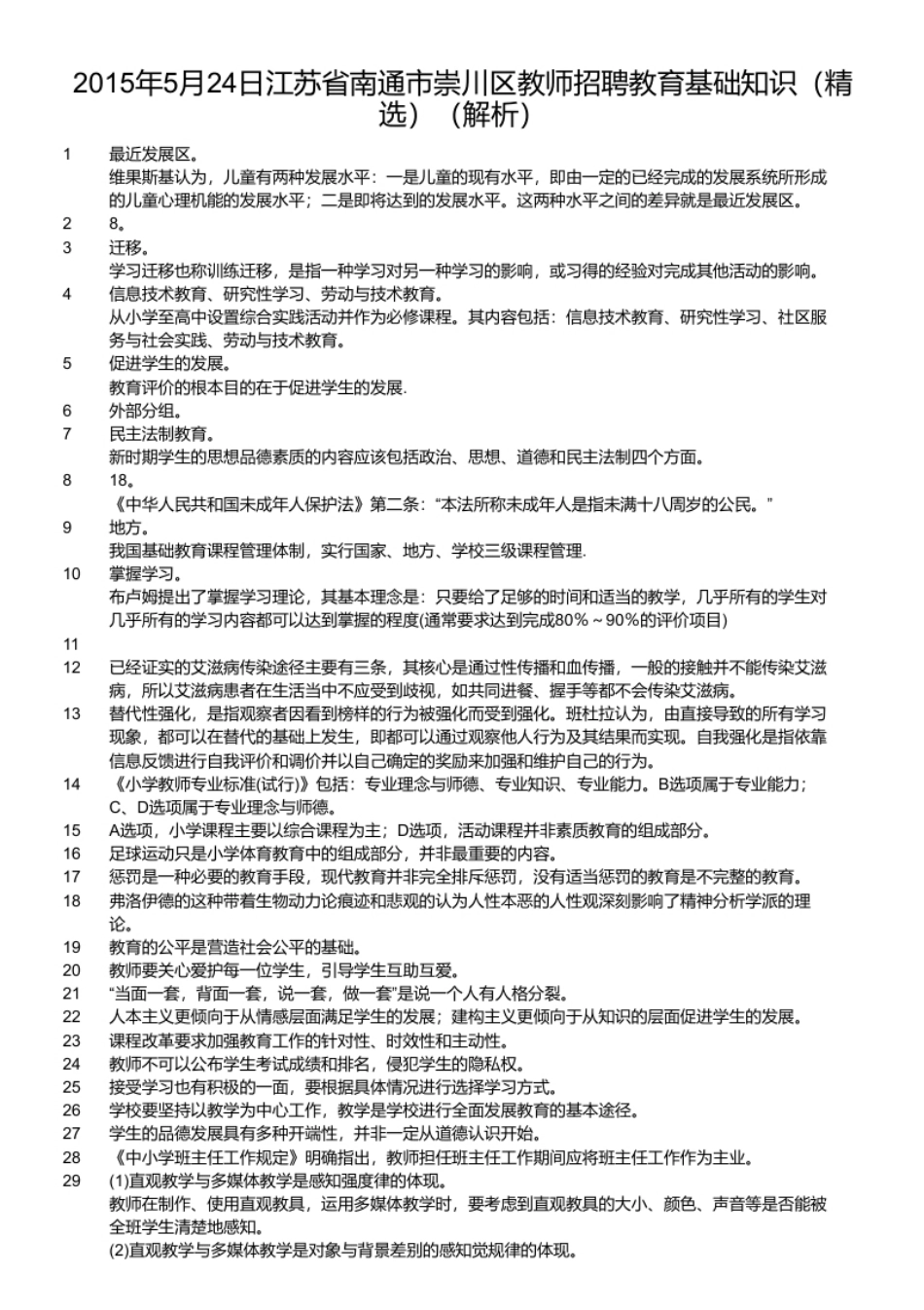 2015年5月24日江苏省南通市崇川区教师招聘教育基础知识(精选).pdf