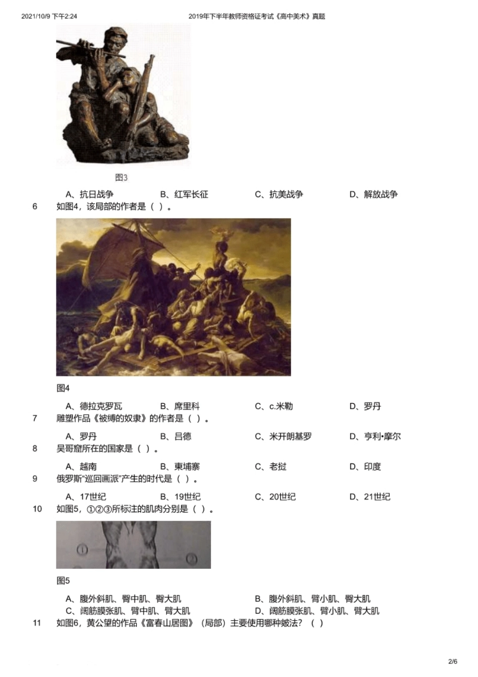 2019年下半年教师资格证考试《高中美术》题.pdf_第2页