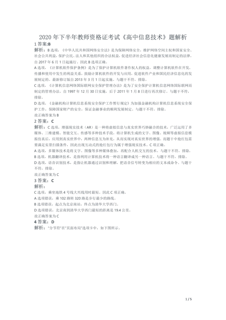 2020年下半年教师资格证考试《高中信息技术》题解析.pdf_第1页