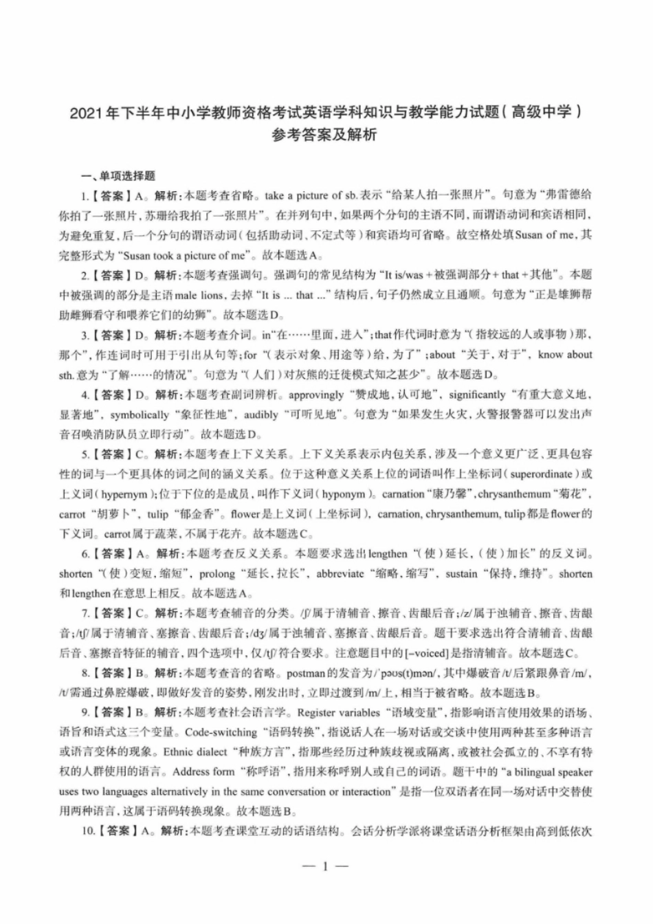 2021年下半年教师资格证考试《高中英语》题(解析).pdf_第1页