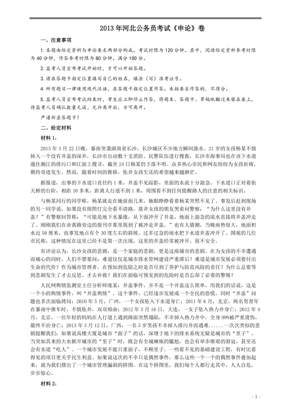 2013年河北公务员考试《申论》真题及参考答案.pdf_第1页