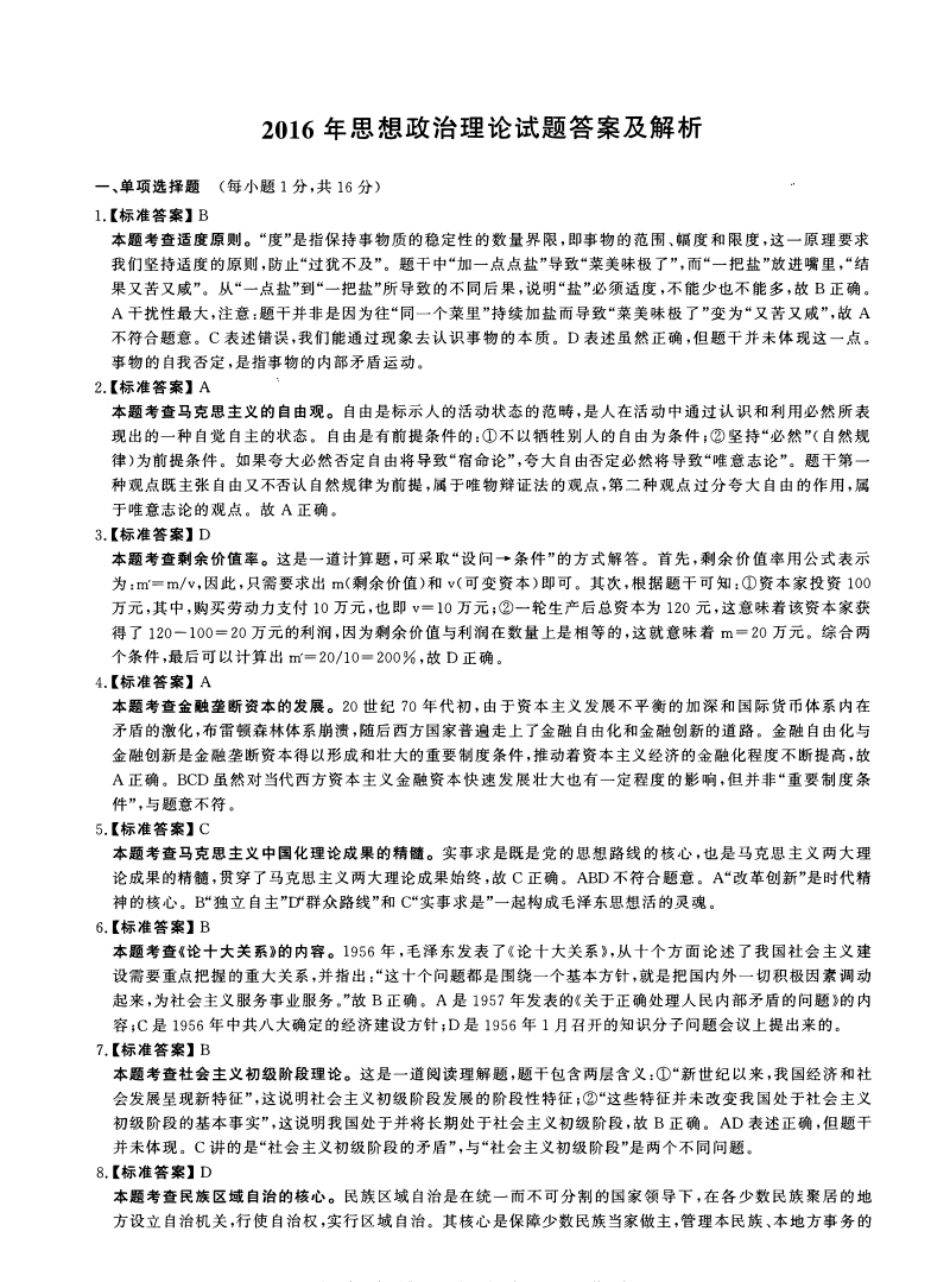 2016年考研政治试题及解析.pdf