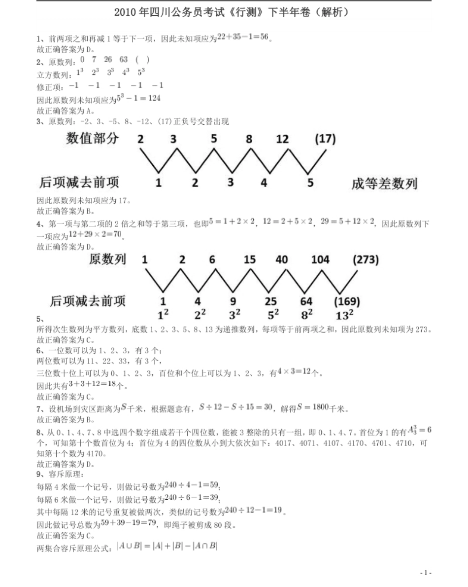 2010年四川公务员考试《行测》(11月26日)答案及解析.pdf_第1页