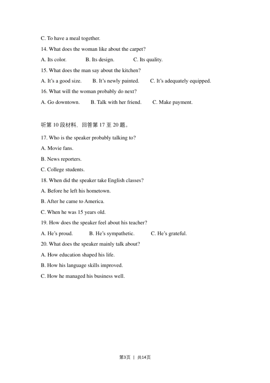 2018年高考英语试卷(新课标Ⅰ卷)(空白卷).pdf_第3页