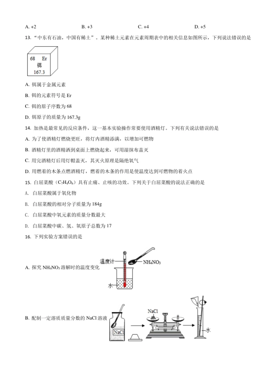 云南省2021年中考化学试题(原卷版).pdf_第2页