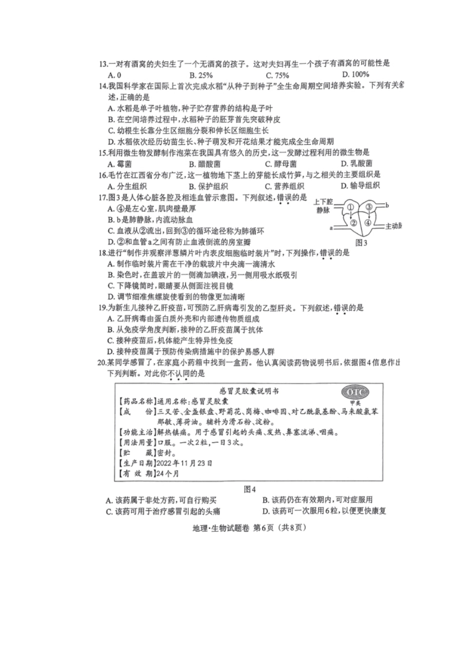 江西省2023年初中学业水平考试生物试题卷.pdf