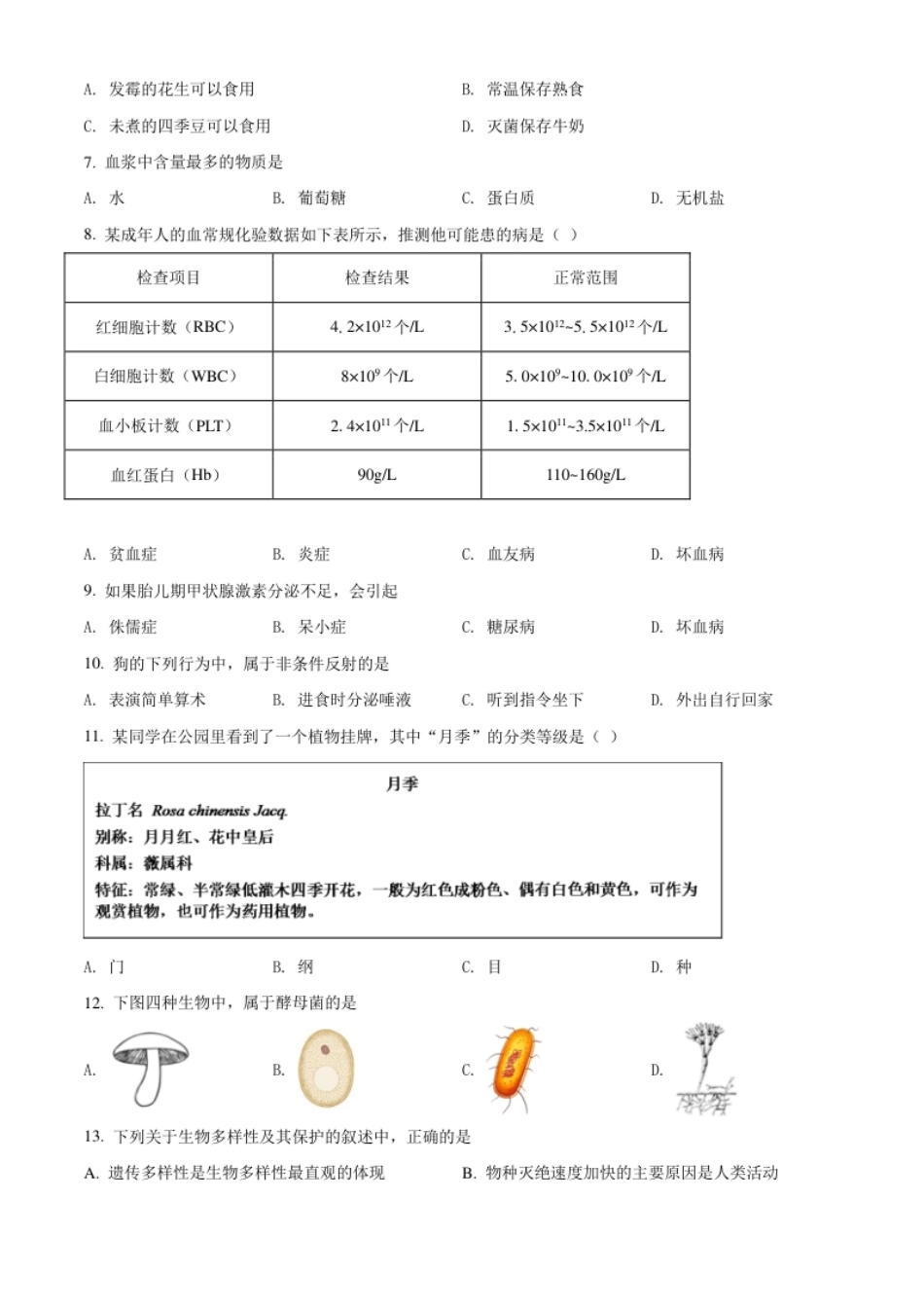 精品解析:江苏省常州市2021年中考生物试题(原卷版).pdf_第2页