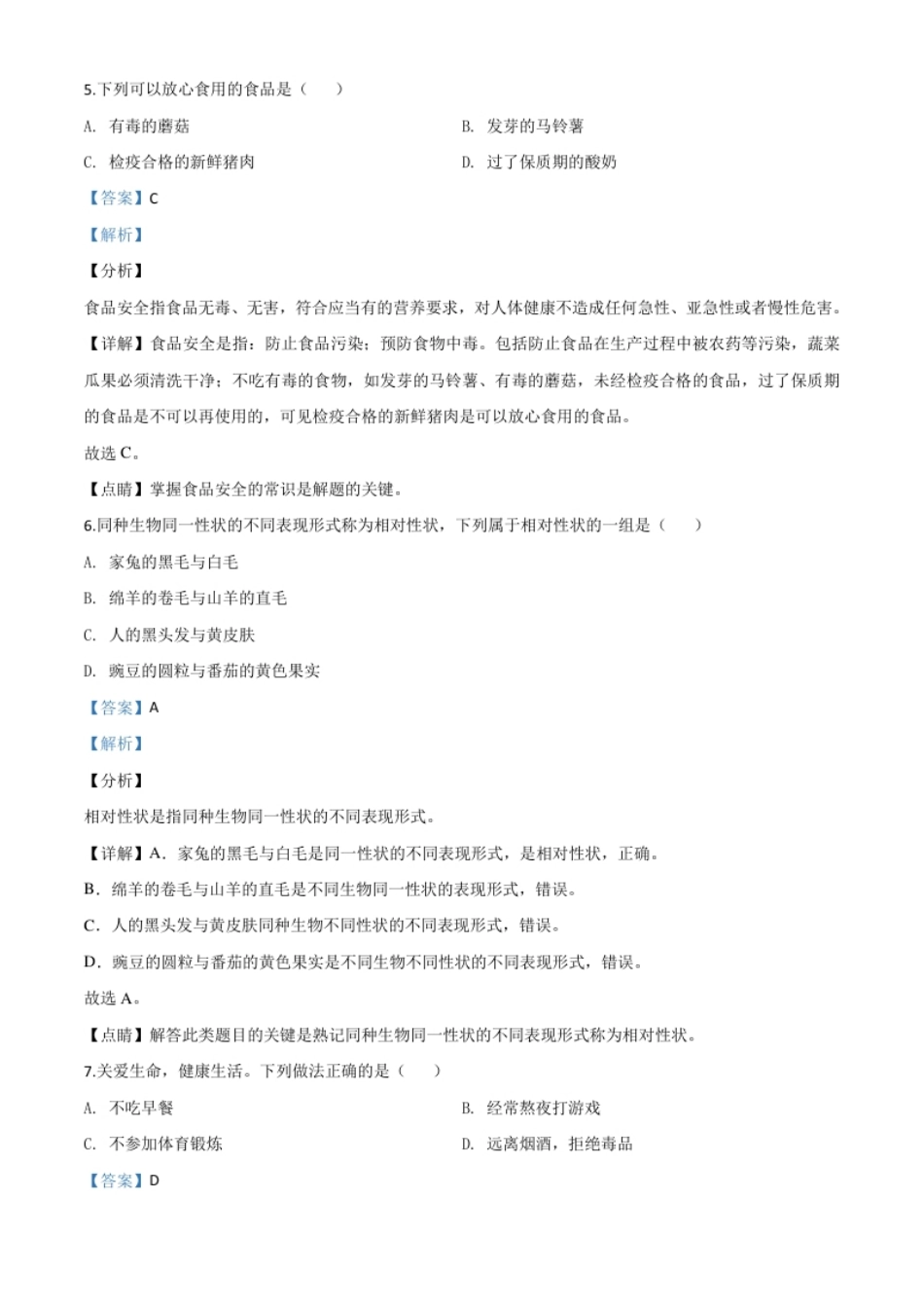 精品解析:2020年黑龙江省绥化市中考生物试题(解析版).pdf_第2页