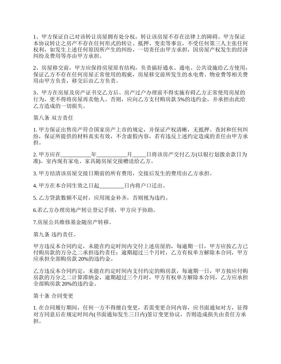 房屋买卖合同常用转让方(以下简称甲方)甲方:_____身份证号:_____受让方(以下简称乙方)乙方:_____身份证号:_____甲乙双方在平等、自愿、协商一致的基础上就甲方将自己合法拥有的一套房屋转让给乙方一事,达成...