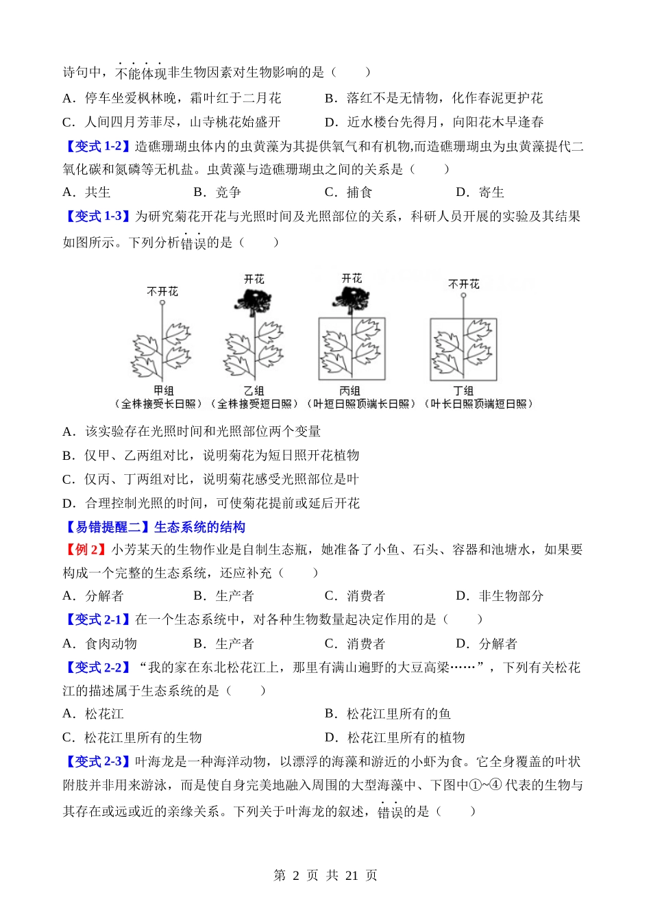 易错点01生态系统易错字梳理地域食物链蜘蛛蟹铅污染生物富集物质循环栽培植物易错陷阱易错陷阱1:分不清生物影响环境和环境影响生物【陷阱分析】根据题干信息不能准确找到施加者和改变者,从而不能分清生物影响环...