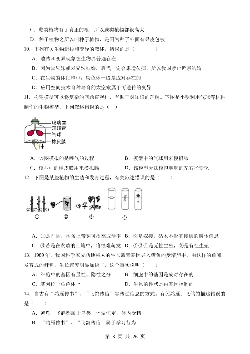 2024年中考第二次模拟考试(河南卷)生物(考试时间:50分钟试卷满分:50分)注意事项:1.答卷前,考生务必将自己的姓名、准考证号填写在答题卡上。2.回答第Ⅰ卷时,选出每小题答案后,用2B铅笔把答题卡上对应...