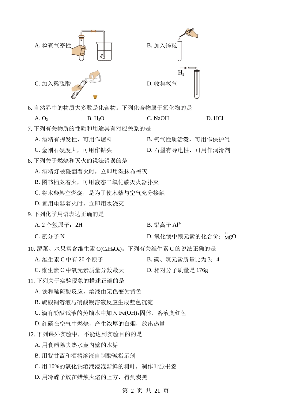 2024年中考第一次模拟考试(南京卷)化学(本卷共21小题,满分80分,考试用时60分钟)注意事项:1.答卷前,考生务必将自己的姓名、准考证号填写在答题卡上。2.回答第Ⅰ卷时,选出每小题答案后,用2B铅笔把答题...