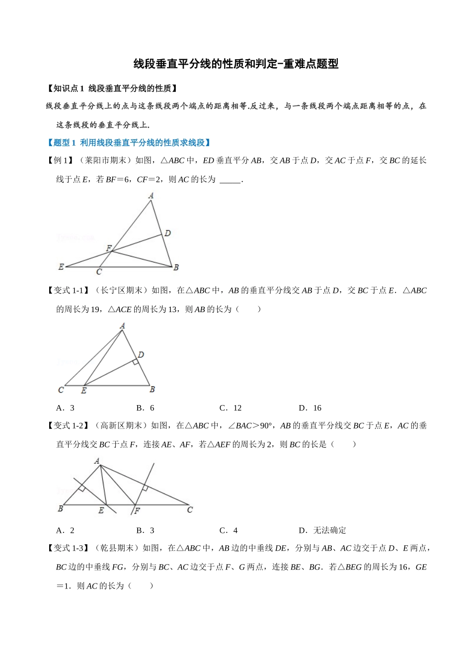 专项13-线段垂直平分线的性质和判定-重难点题型.docx