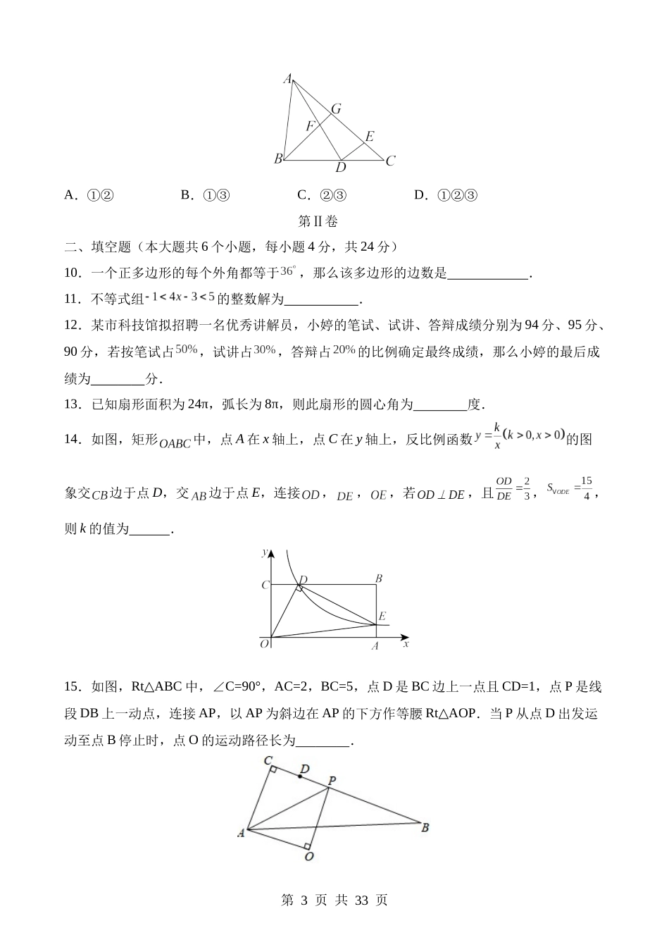 2024年中考第二次模拟考试(新疆卷)数学第Ⅰ卷一、选择题(本大题共9个小题,每小题4分,共36分.在每个小题给出的四个选项中,只有一项符合题目要求,请选出并在答题卡上将该项涂黑)1.有理数的绝对值为()A...