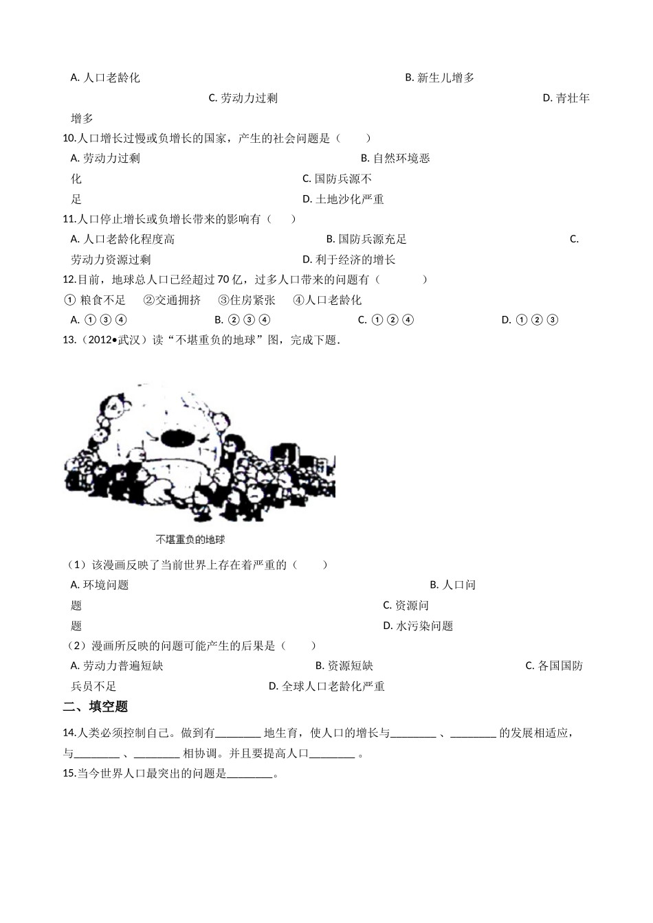 中图版八年级上册地理 3.1人口与人种 同步练习_八年级上册.docx_第2页