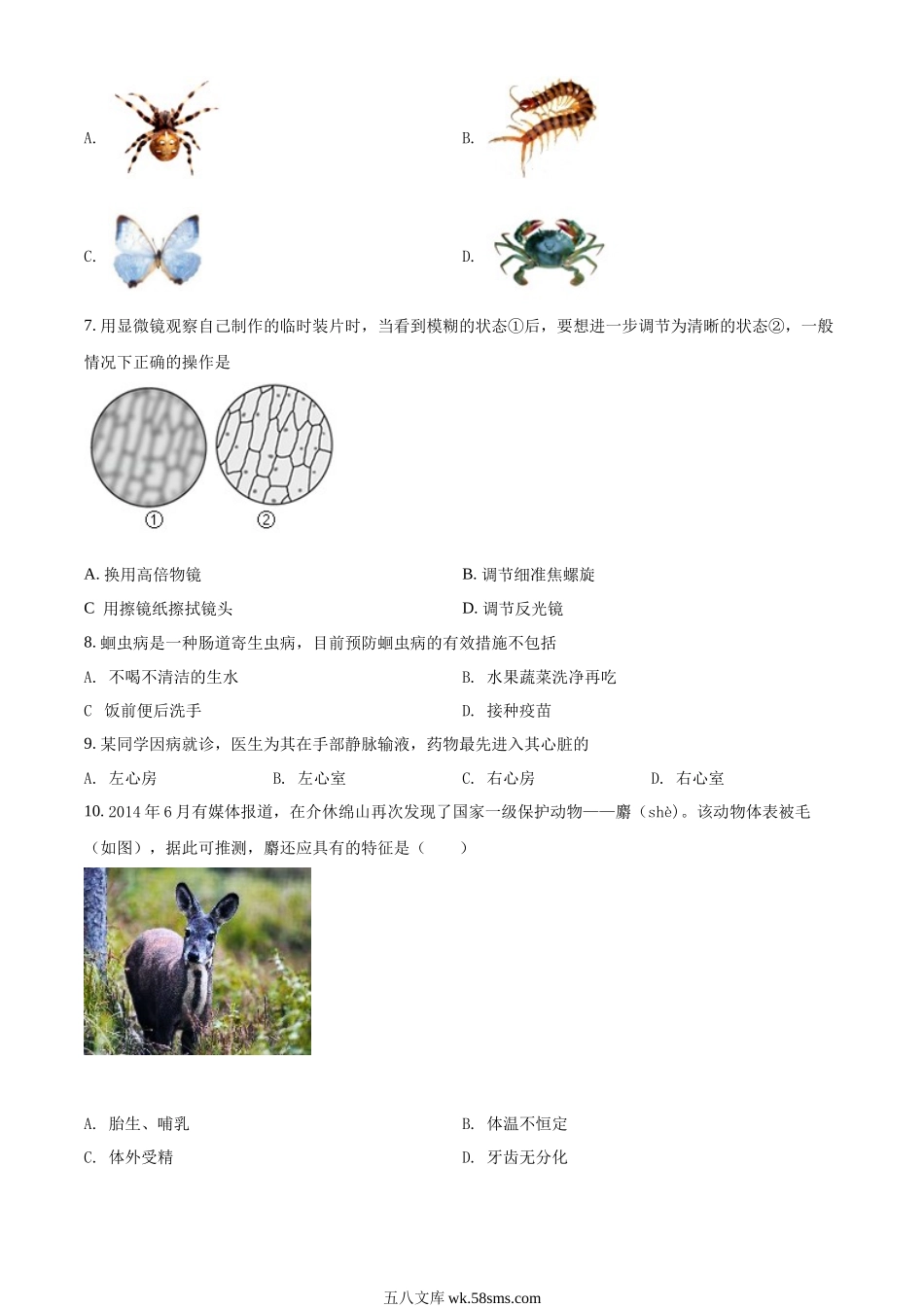 精品解析:2022年山西省太原市学业水平测试生物真题(原卷版)_八年级下册生物.docx_第2页
