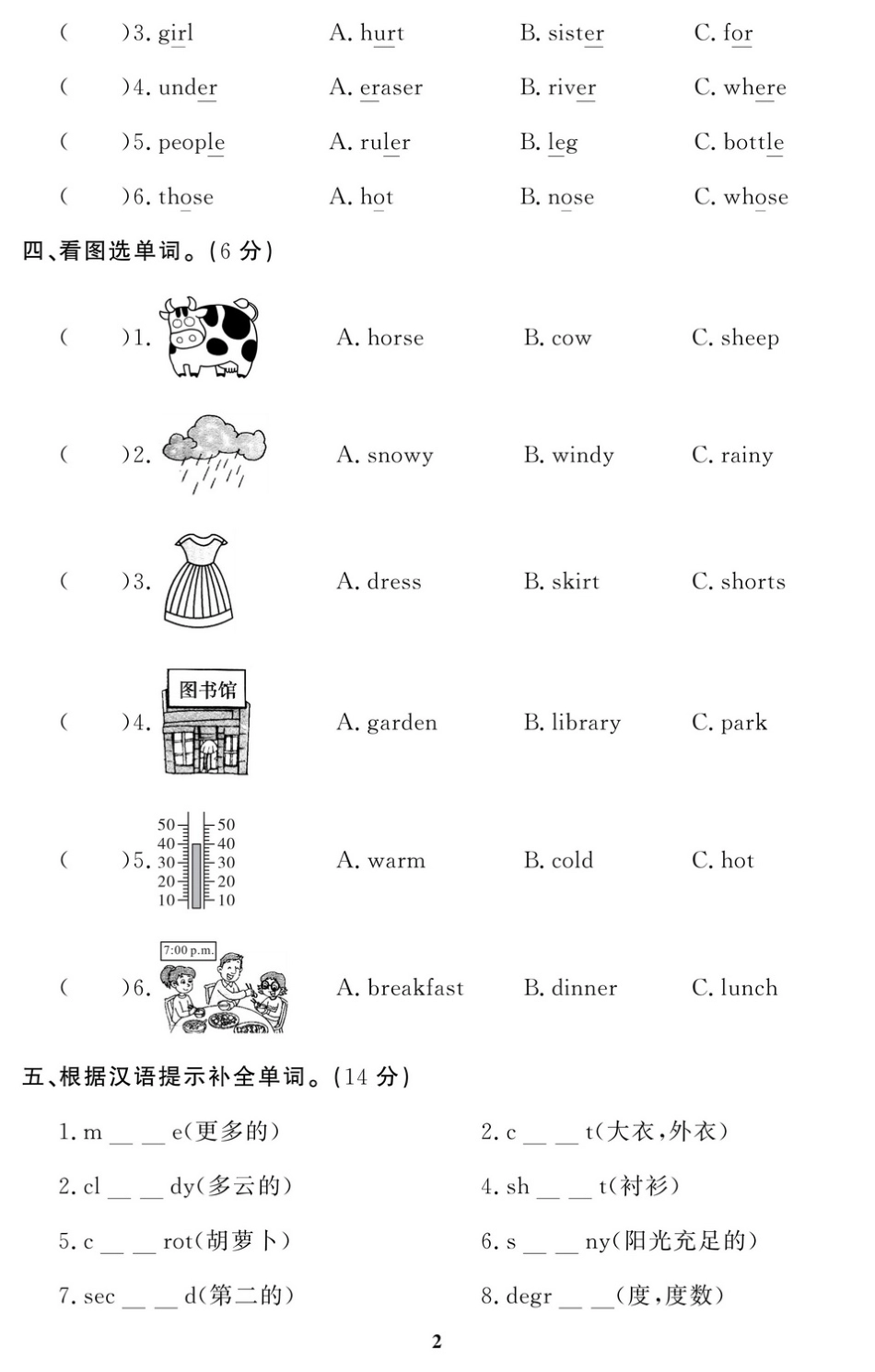 小学四年级下册四(下)人教PEP版英语期末试卷11套.pdf_第2页