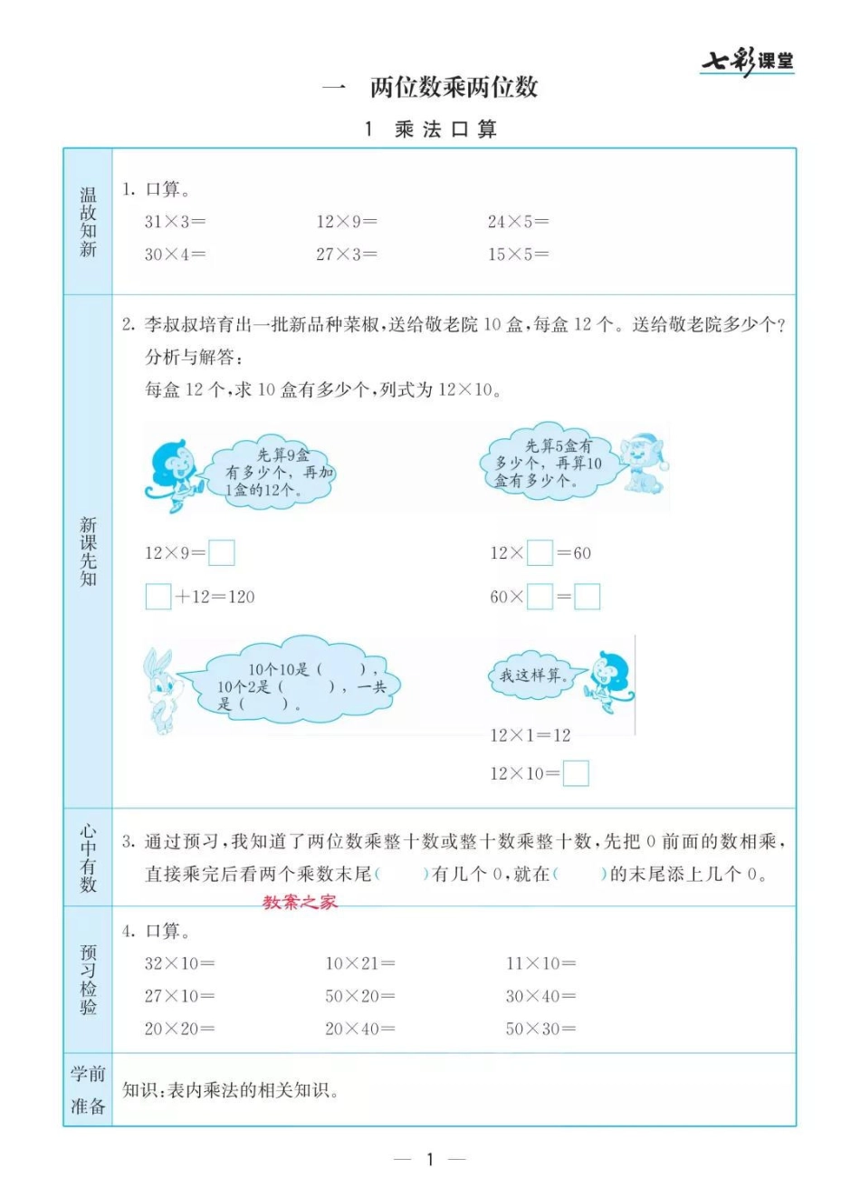 小学三年级下册苏教版三年级下册数学预习卡.pdf