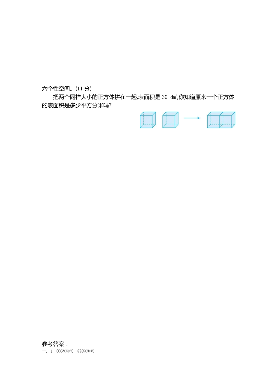 五年级数学下册第二单元测试卷(2)时间:90分钟满分:100分分数:一填空。(31分)1.下面是长方体的有(),是正方体的有()。2.长方体有()个面,()条棱,()个顶点,相对的棱的长度(),相对的面都();正方体有()个面,()条棱,()...